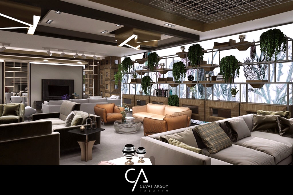 Kanepe ve köşe koltuk takımlarından, sinema sistemli özel kanepeler, tv koltukları ve çeşitli oturum  gruplarının rahat bir alanda teşhir edilmesine özen gösterildi. Ürün aydınlatmalarında kullanılacak armatürlerin gerek görsel, gerekse ışık performanslarında yüksek kalite algısı hedef alındı. Cevat Aksoy Tasarım ekibi olarak, mağaza konseptinin her alanında birbirinden farklı ışık türlerine yer verilerek, ayrıcalıklı bir aydınlatma performansı sağlanması planlandı.